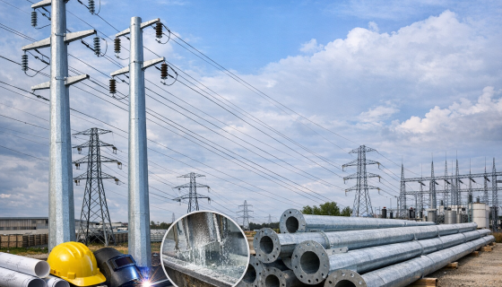 Galvanizli civatalı direkler, elektrik ve aydınlatma altyapı projelerinde yaygın olarak kullanılan, ...